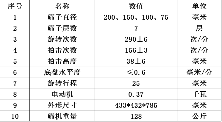 BZJ-200拍擊式標(biāo)準(zhǔn)振篩機(jī)主要技術(shù)參數(shù):