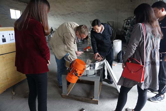 2017年10月10日,德國(guó)客戶朋友協(xié)同翻譯來(lái)我公司實(shí)地參觀考察‘大漢牌’ZPS系列直排式振動(dòng)篩。