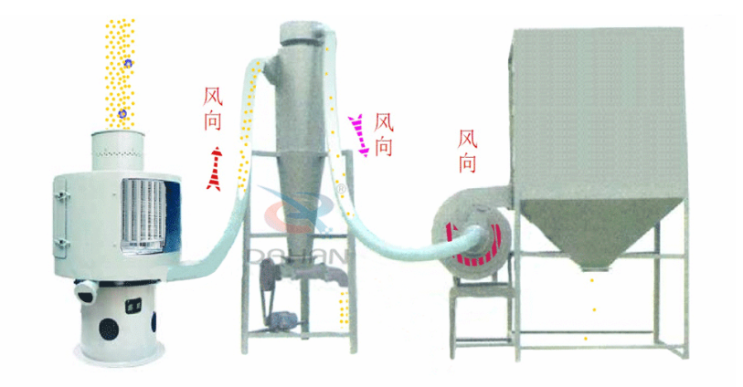LQS系列氣流篩分摒棄重力勢能作業原理,采用空氣作載體,動能作功的作業原理。通過負壓氣流將物料與空氣混合后,進入篩機風輪中間,通過風輪葉片施加足夠的離心力,向桶形篩網噴射過網,經過蝸殼收集,超徑物料不能過網,由自動排渣口排出,從而達到快速篩分之目的。